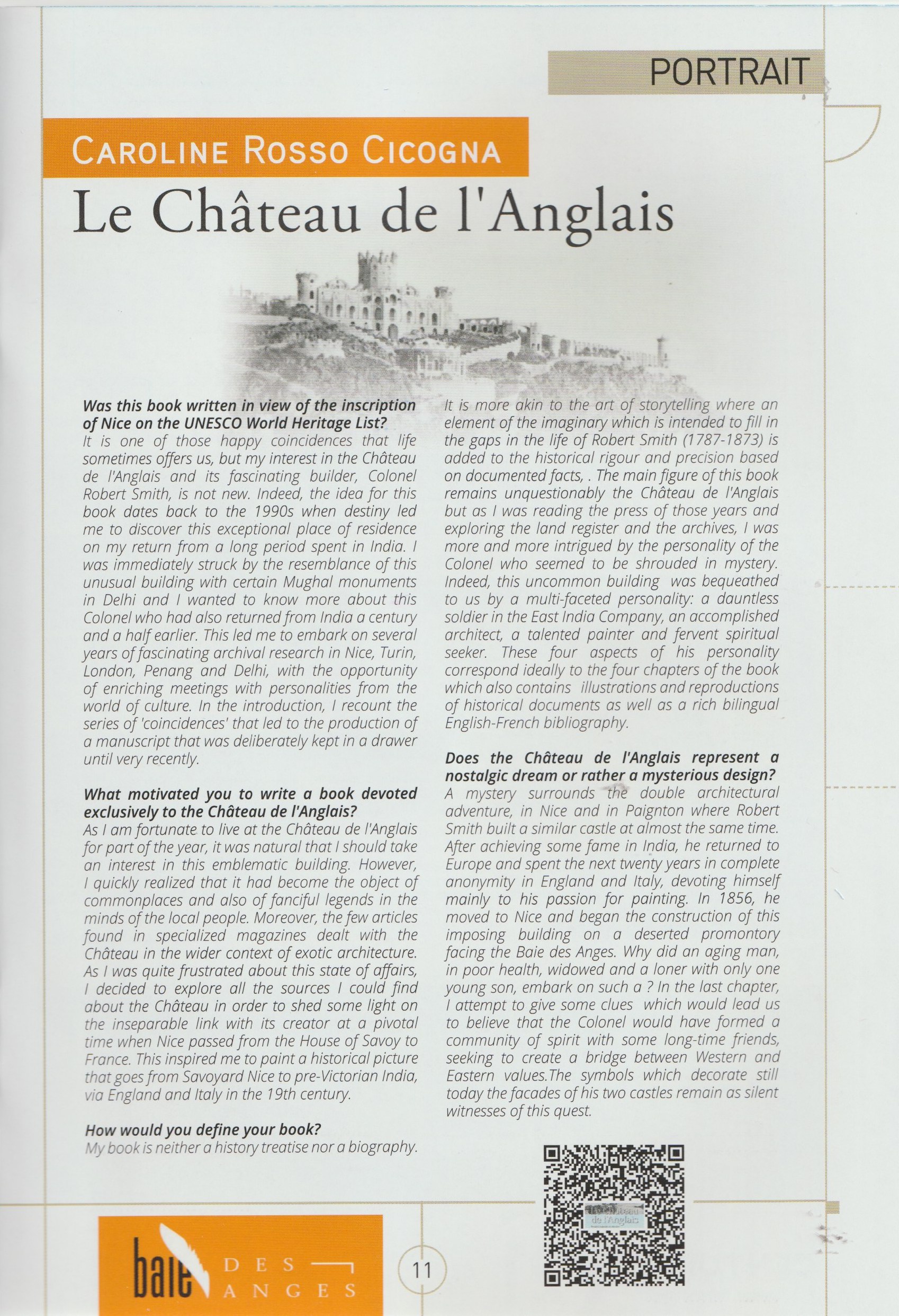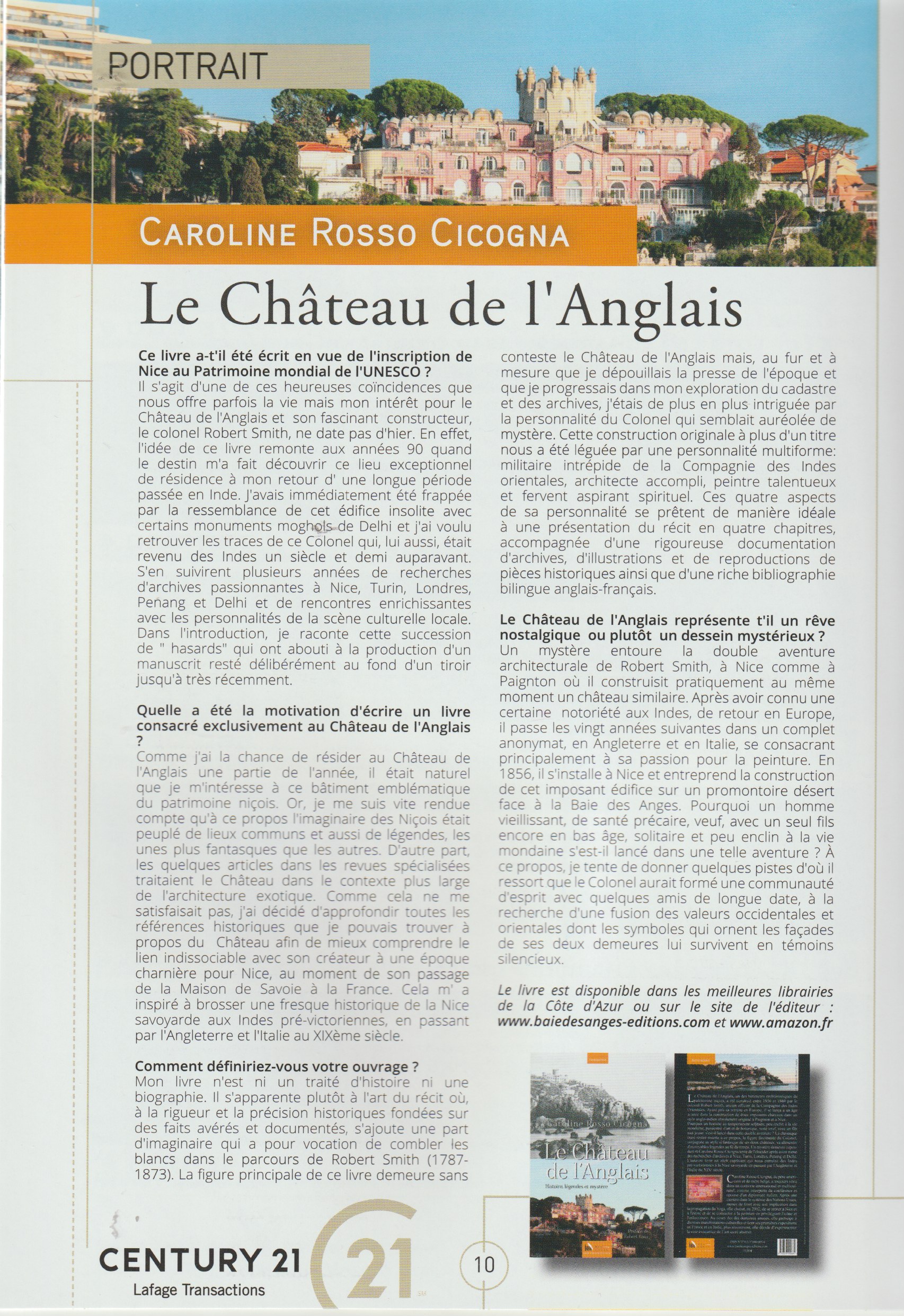 Lorsque l'on évoque aujourd'hui le Château de l'Anglais, on se limite généralement au fait qu'il a été construit par un colonel anglais excentrique, de retour d'un long séjour en Inde au milieu du XIXe siècle. Plus d'une personne suggère qu'il s'agit d'une "folie" architecturale de cette époque, l'affublant même du sobriquet populaire de Château du Fada, alors qu'il incarne la réussite matérielle et la grandeur spirituelle du colonel Robert Smith. Ce livre vise à démontrer que ce monument emblématique du patrimoine de Nice et l'être énigmatique et solitaire qui l'a conçu et construit méritent davantage d'attention et de considération alors qu'est annoncée la candidature de la ville de Nice à l'inscription sur la liste du patrimoine mondial de l'UNESCO, comme "Capitale du Tourisme de Riviera".